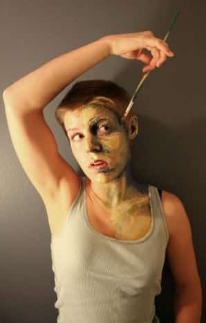 Shaving her head was on her bucket list … she held off as long as she could, one bad perm is all it took to convince me. I should have known it would all be alright, she was beautiful without hair at 6 months, why not at 20?! What we didn’t know is that it would be the highlight of our July 4th barbecue. This was not the first time our kids used their own bodies as a canvas for their paint … she named this one “self portrait”.