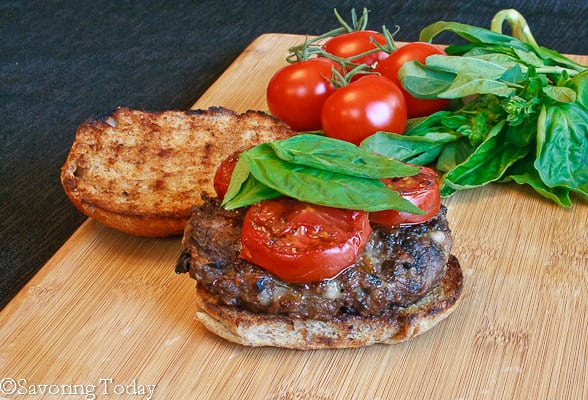 I have grown quite fond of adding cheese and savory components directly into the beef instead of waiting to add them as a topping. It’s all there, distinct flavors of Italy—prosciutto, fontina cheese, porcini mushrooms, grilled tomatoes, and fresh basil—in each and every bite. We surrounded ours with toasted Caramelized Onion Sprouted Wheat Buns to catch all the juicy details.